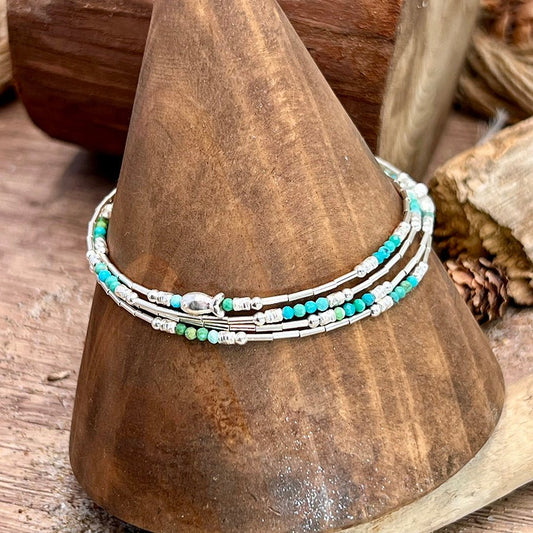 BRACELET femme multi-rang TURQUOISE ON THE ROCKS – perles de turquoise facettées, liquid silver et mini poissons argent 925