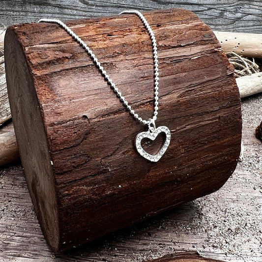 Collier femme TOO HOT TO CARE – chaîne boules facettées scintillantes, pendentif cœur oversize ajouré zircons et argent 925