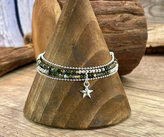 Bracelet femme multi-rang RARE LIKE ME – perles de séraphinite, pendentif étoile et argent 925