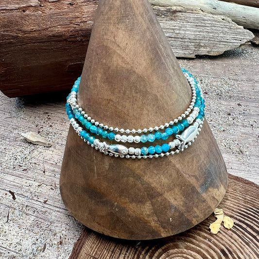 Bracelet femme multi-rang REEF & RUM – perles d’apatite, poissons miroir et argent 925