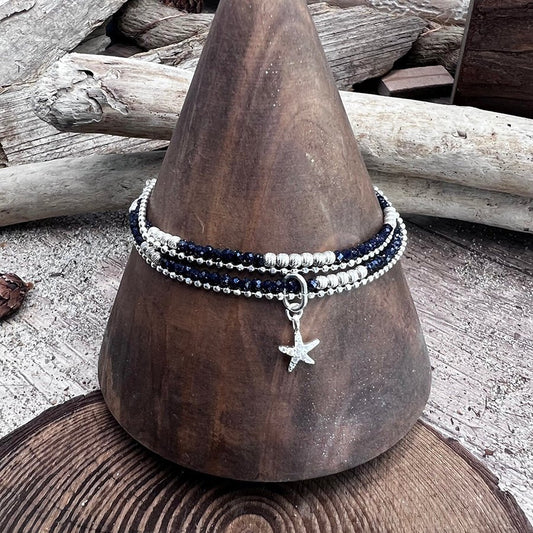Bracelet femme multi-rang SEA IT AND CRY, BABY – perles d’apatite facettées, pendentif étoile de mer et argent 925