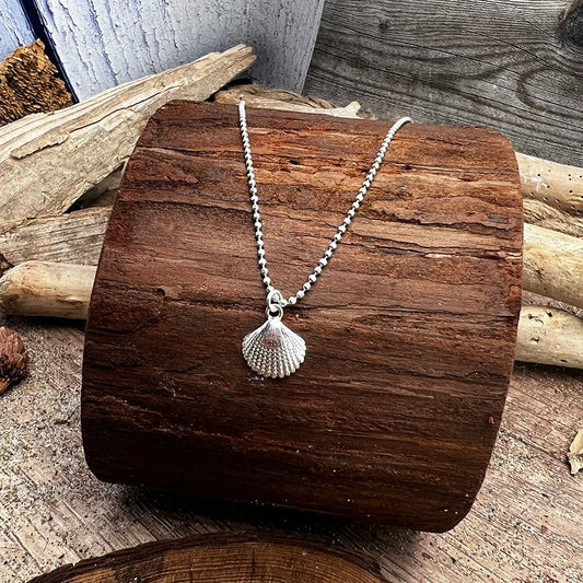 Collier femme SEA-DUCTIVE SHELL – chaîne boules facettées scintillantes, pendentif coquillage oversize et argent 925