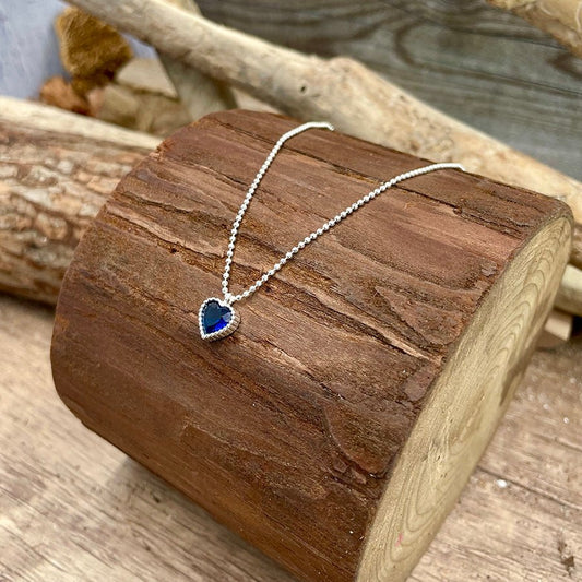 Collier femme ICY BUT BLUE, GAL – chaîne boules facettées scintillantes & pendentif cœur taille diamant façon saphir serti griffé strié en argent 925