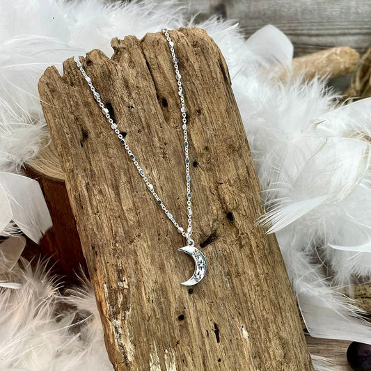 Collier femme FULL MOON & NO FILTER – chaîne forçat cubes facettés & pendentif lune oversize zircons étoilés en argent 925