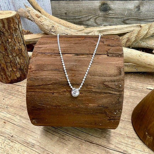 Collier femme TINY BUT BOSSY – chaîne boules facettées scintillantes, pendentif halo zircon et argent 925