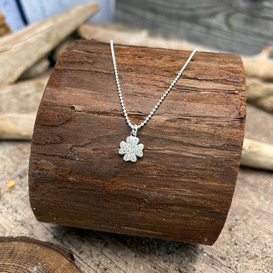 Collier femme JACKPOT BABY – chaîne boules facettées scintillantes, pendentif trèfle oversize zircon façon diamant, argent 925