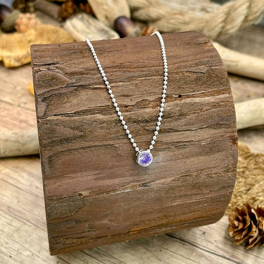 Collier femme VIOLET OBSESSION – chaîne boules facettées scintillantes & pendentif zircon violet façon solitaire en argent 925