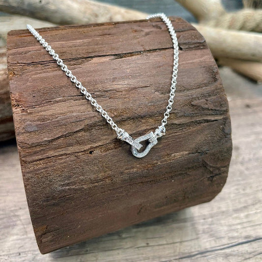 Collier femme CLIPPED & ICED, STUNNA – chaîne jaseron & fermoir fer à cheval pavé de zircons façon diamant en argent 925