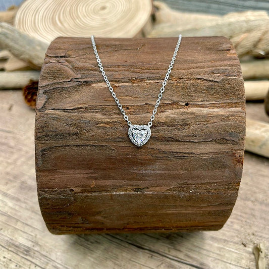 Collier femme HEARTBREAKER MODE ON – chaîne maille forçat fine et pendentif cœur pavé zircon argent 925