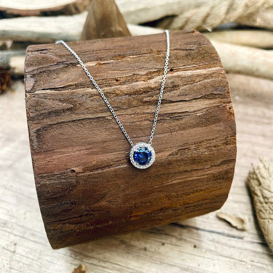 Collier femme ICE YOUR MAJESTY – chaîne forçat facettée & pendentif halo zircon façon saphir et zircons façon diamant en argent 925