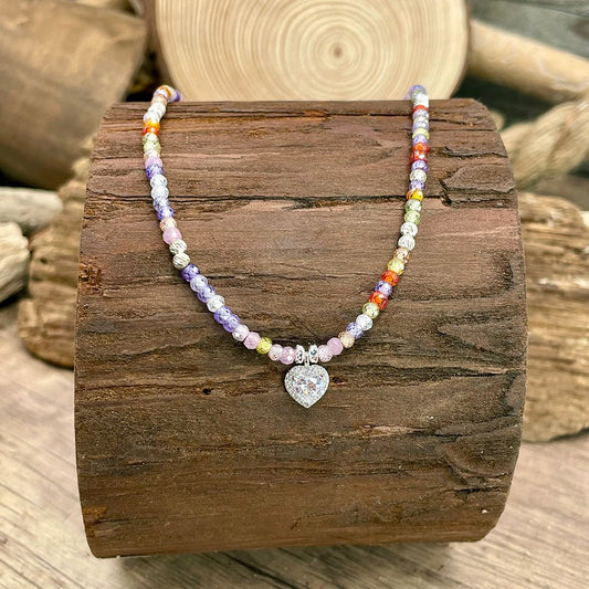Collier perles femme LICK MY HEART – perles de zircons multicolores & pendentif cœur zircon halo en argent 925