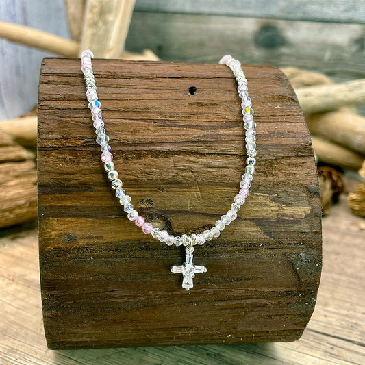 Collier femme BLEED FOR ME BABY – perles de grenat facettées, croix pavée de zircons, perles intercalaires diamantées en argent 925