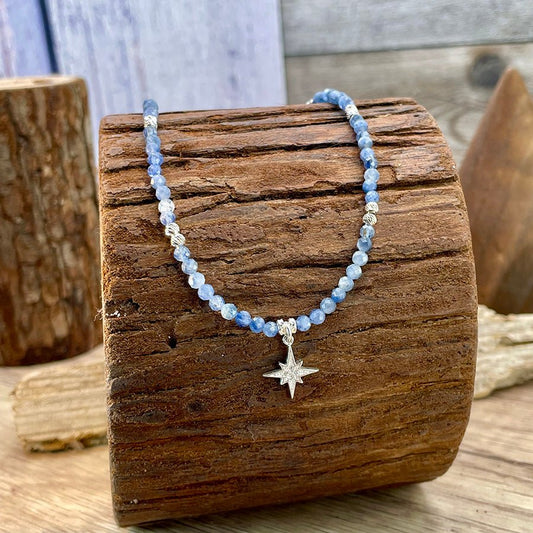 Collier perles femme NORTH LUST – perles de cyanite facettée & pendentif étoile du Nord pavée de zircons en argent 925