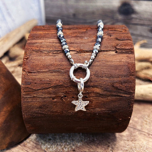 Collier perles femme SPARK ME UP – perles de térahertz facettées, fermoir bouée & pendentif étoile de mer pavé zircon et argent 925