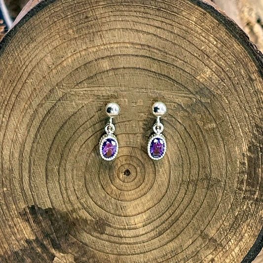 Boucles d’oreilles femme GRAPE ME HARDER – clous argent 925 et pendentifs zircon violet façon améthyste, serti milgrain