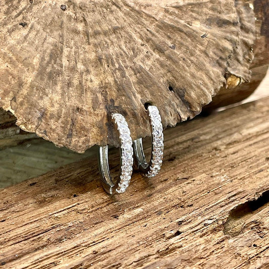 Boucles d’oreilles femme ICY TALK – créoles 14 mm pavées de zircons façon diamant et argent 925