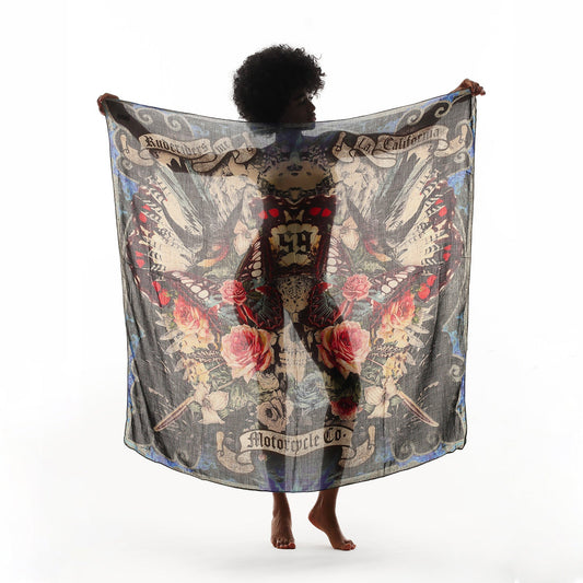 FOULARD RUDE RIDERS® MODÈLE SKULL & BUTTERFLIES