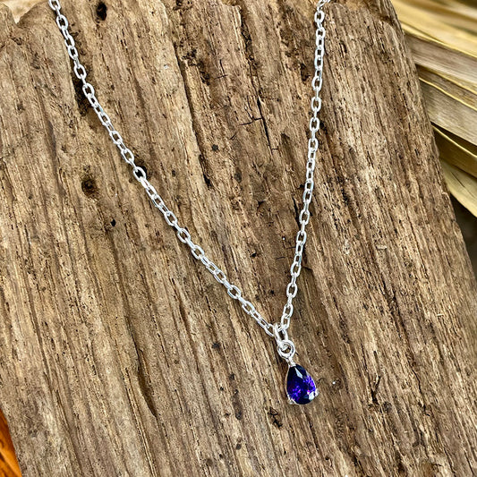 Collier homme 4 EVER SERGE – chaîne forçat, pendentif poire zircon violet et argent 925