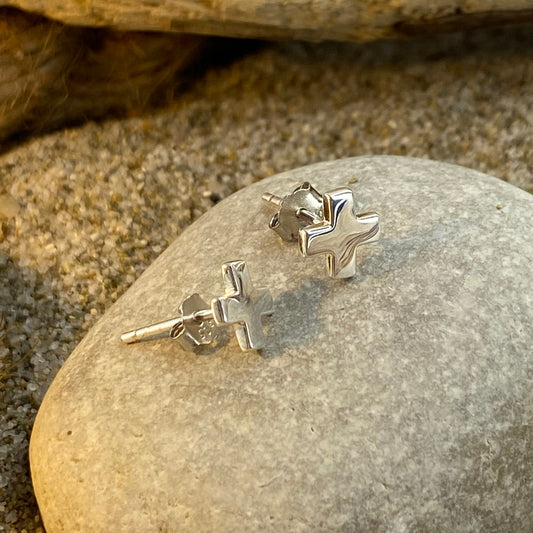 Boucles d’oreilles unisexe PLUS IS MORE – puces croix argent 925 poli miroir 11 mm