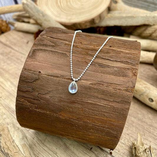 DIAMOND DROP NECKLACE DIAMOND BALL CHAIN AND PEAR-CUT ZIRCONIA PENDANT IN 925 SILVER
