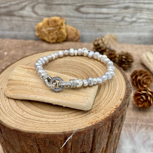 FROST BRACELET GREY FRESHWATER CULTURED PEARLS, 925 SILVER ZIRCONIA CLASP
