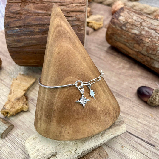 REBEL STAR HALF BANGLE BRACELET WITH PADLOCK PENDANT IN 925 SILVER