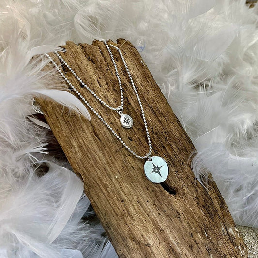 STARLITE NECKLACE DIAMOND BALL CHAINS DOUBLE ROW NORTH STAR PENDANTS IN ZIRCONIA AND 925 SILVER