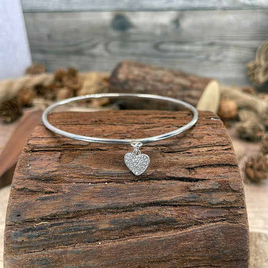 LA VITA È BELLA HALF BANGLE BRACELET WITH HEART PENDANT IN 925 SILVER
