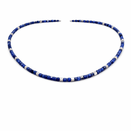 ANGELFISH LAPIS LAZULI PEARL NECKLACE AND 925 SILVER FISH PENDANT