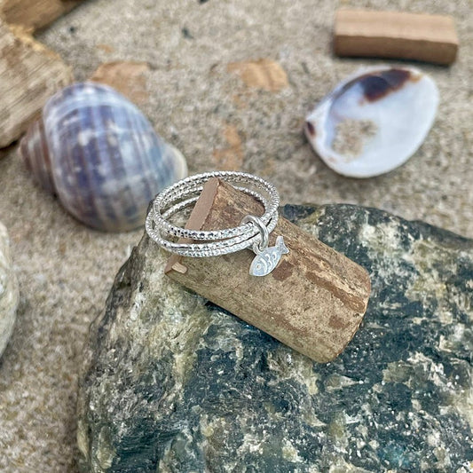 SWIMMY MULTI-ROW RING DIAMOND RINGS FISH PENDANT IN 925 SILVER