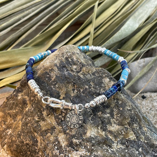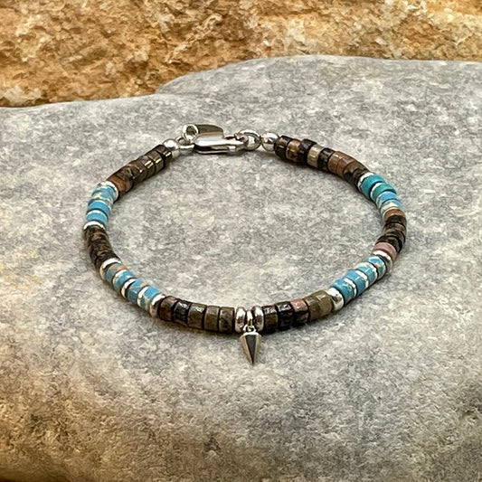 SHORE BREAK SURFER BRACELET WITH GENUINE TURQUOISE HEISHI BEADS AND 925 SILVER SPACER BEADS