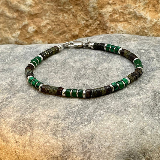 JEFFREYS BAY MEN'S SURFER BRACELET HEISHI JASPER BEADS IN 925 SILVER